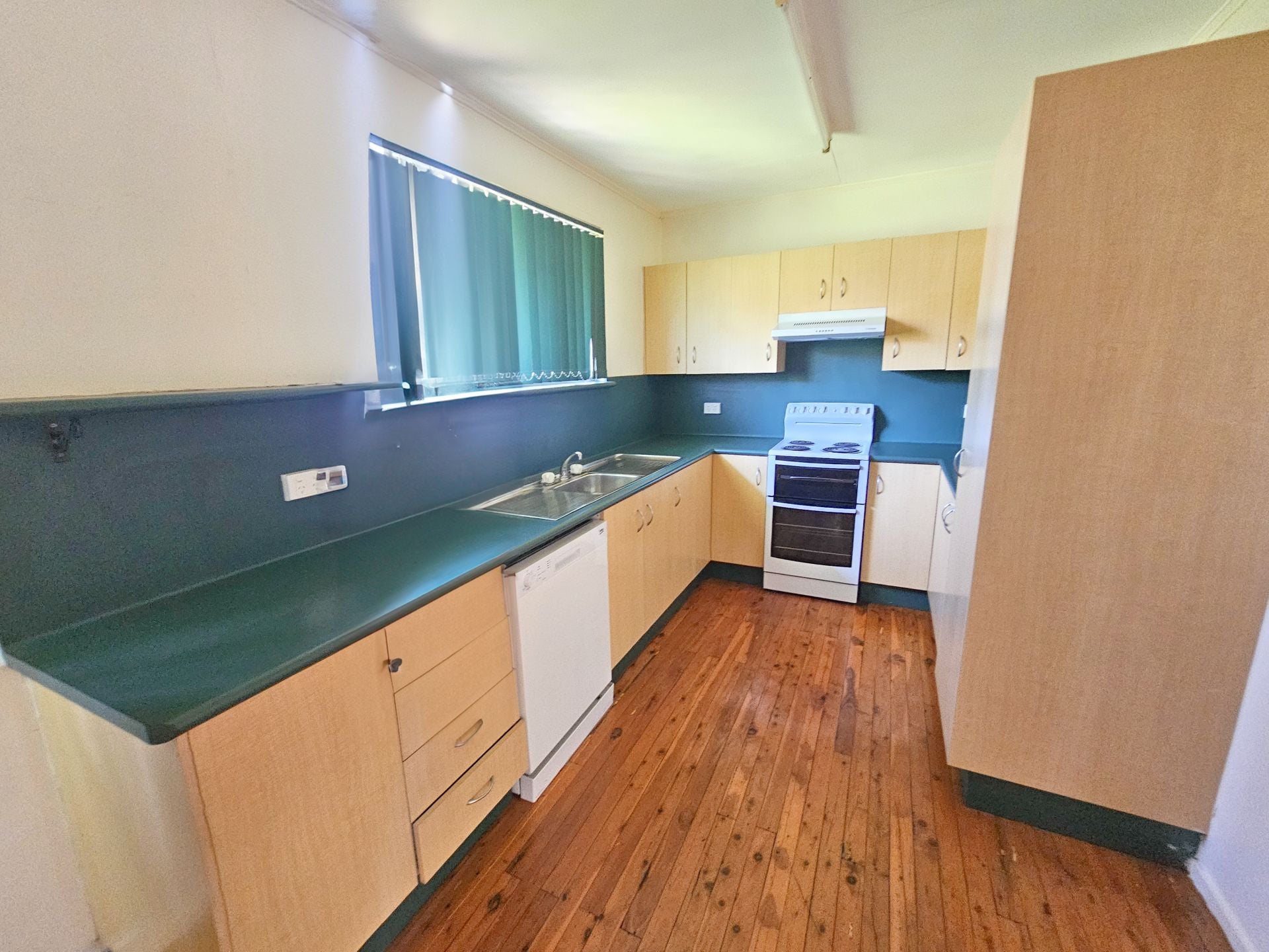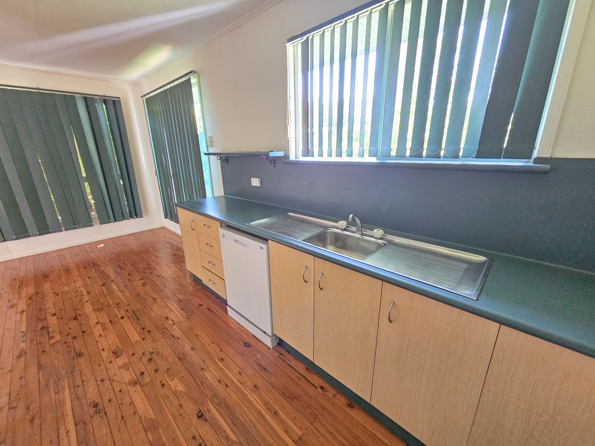 There are open plan living areas to enjoy with polished timber floors and split system cooling, and a neat modular kitchen with loads of storage and benchspace, and electric stove and rangehood plus a dishwasher. There is even an internal laundry.