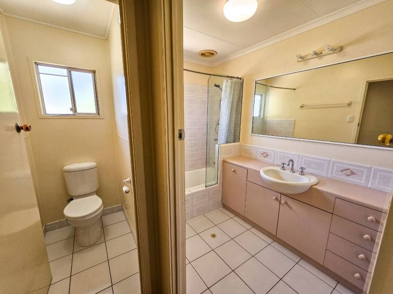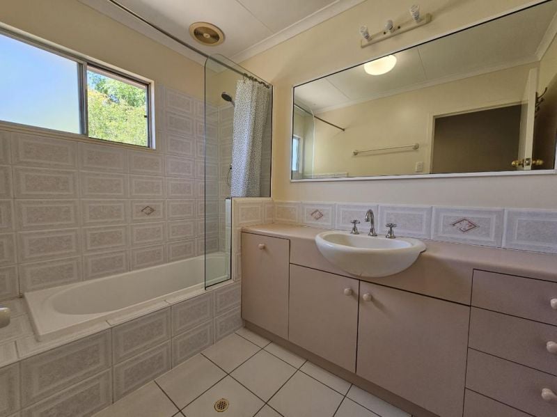 The family bathroom offers a shower over the bath, vanity and a separate toilet, and there is even a second toilet downstairs in the rumpus room. Speaking of the rumpus, this most excellent of spaces has with tiled flooring ( and even space for the laundry to be tucked away on the back wall), split system cooling and glass doors leading out to a shady entertainment area.