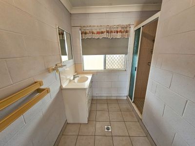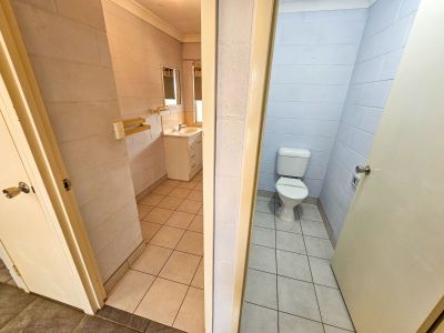 Both bedrooms are neatly tiled and the main bedroom also offers a full wall of built-in robes. The bathroom is well-laid out for ease of use and offer a glass screened shower, vanity and separate toilet.